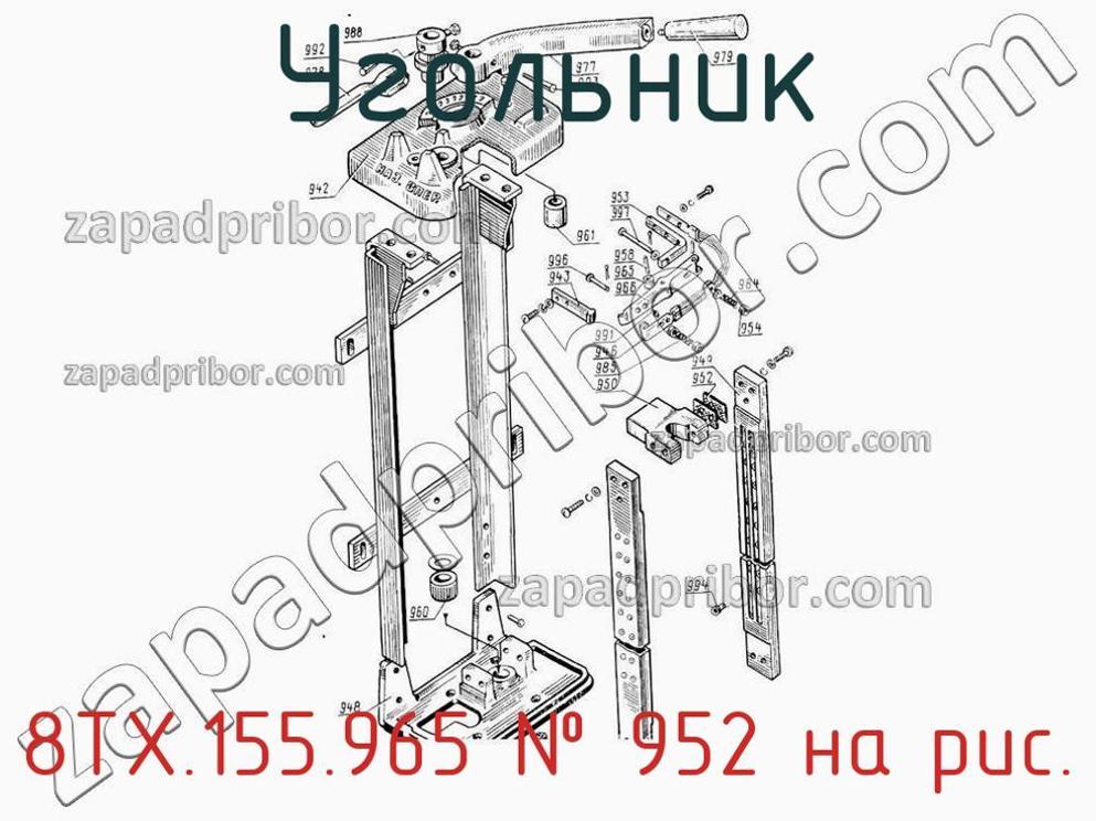 Мы даем гарантию на отсутствие брака или других несоответствий технической документации. Для приобретения 8ТХ.155.965 обращайтесь в наш отдел продаж. Информацию о цене, наличию, срокам доставки, гарантии и любые другие вопросы уточняйте у наших менеджеров. Угольник, номер 952 на чертеже, Корпус (936), палец контактный (947), рукоятка (941) КВ-0801Т и другие запасные части для , а также другие угольники и похожие изделия представлены на сайте zapadpribor.com.