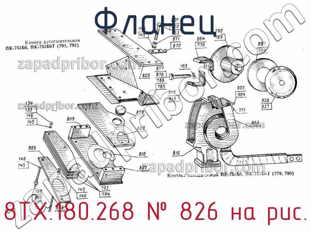 Наш отдел технического контроля гарантирует отсутствие брака или других несоответствий в технической документации или комплектации всех фланцев представленных на нашем сайте. Чтобы заказать 8ТХ.180.268 обращайтесь в отдел продаж. Чтобы узнать цену, наличие, сроки поставки, срок гарантии и другие вопросы позвоните по телефонам указанным в контактах или оставьте заявку через форму обратной связи. Фланец, номер 826 на чертеже, Камера дугогасительная,Контакт неподвижный ПК-753Б6, ПК-753Б6Т и другие запасные части для , а также другие фланцы и похожие изделия представлены на сайте zapadpribor.com.