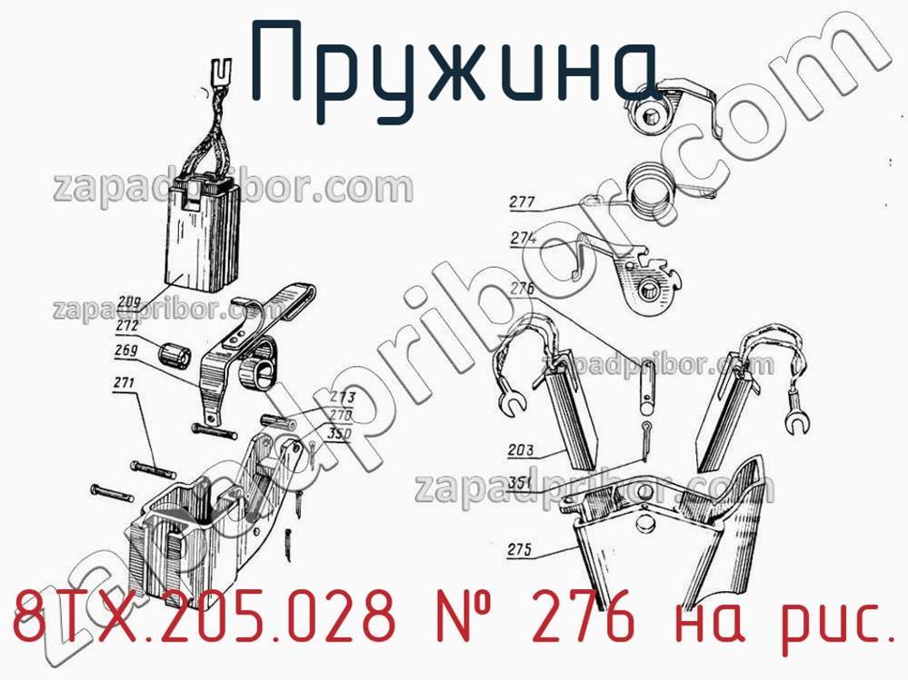 Наш отдел технического контроля гарантирует отсутствие брака или других несоответствий в технической документации или комплектации всех пружин представленных на нашем сайте. Чтобы заказать 8ТХ.205.028 обращайтесь в отдел продаж. Чтобы узнать цену, наличие, сроки поставки, срок гарантии и другие вопросы позвоните по телефонам указанным в контактах или оставьте заявку через форму обратной связи. Пружина, номер 276 на чертеже, Щеткодержатель ГП-300Б, ГП-300Т (197,196) и другие запасные части для , а также другие пружины и похожие изделия представлены на сайте zapadpribor.com.