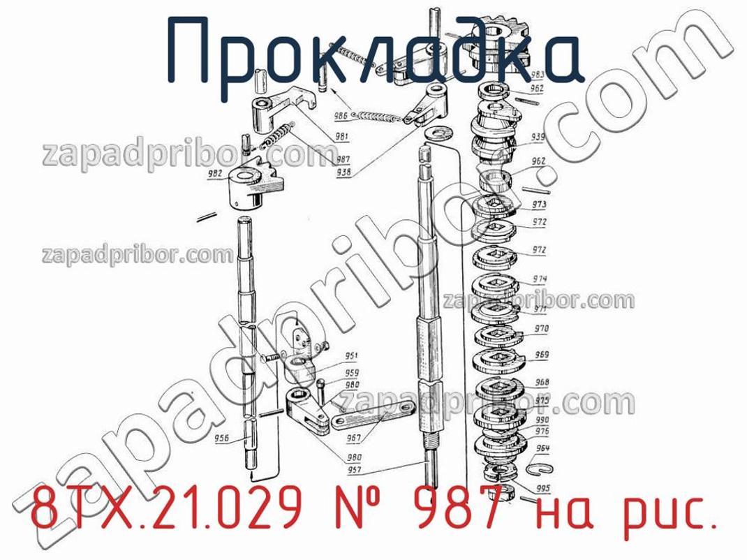 Мы даем гарантию на отсутствие брака или других несоответствий технической документации у всех прокладок. Для приобритения 8ТХ.21.029 - обратитесь в наш отдел продаж. Чтобы получить более подробную информацию о товаре, его доставке или у вас есть любой другой вопрос - позвоните нам и мы поможем вам окончательно определиться по поводу приобретения этого товара. Прокладка изолирующая, номер 987 на чертеже, Вал реверсивный (937), Барабан (940) КВ-0801Т и другие запасные части для , а также другие прокладки и похожие изделия представлены на сайте zapadpribor.com.