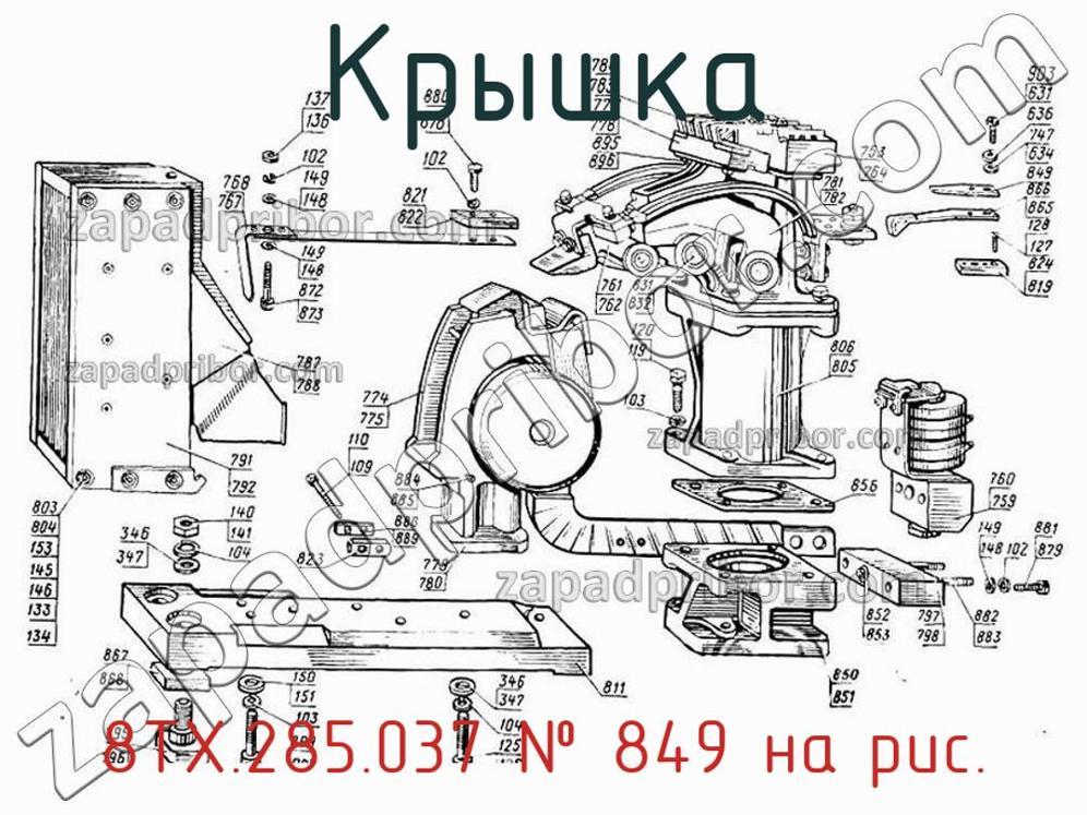 Мы даем гарантию на отсутствие брака или других несоответствий технической документации у всех крышек. Для приобритения 8ТХ.285.037 - обратитесь в наш отдел продаж. Чтобы получить более подробную информацию о товаре, его доставке или у вас есть любой другой вопрос - позвоните нам и мы поможем вам окончательно определиться по поводу приобретения этого товара. Крышка, номер 849 на чертеже, Контактор электропневматический ПК-753Б6, ПК-753 (757,758) и другие запасные части для , а также другие крышки и похожие изделия представлены на сайте zapadpribor.com.