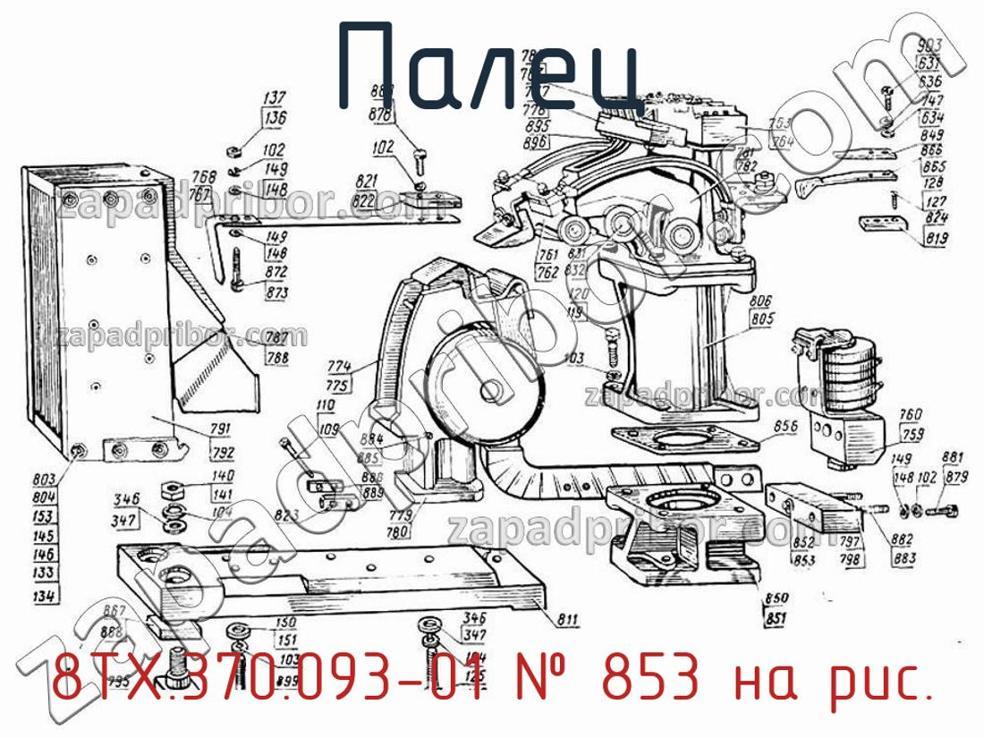 Наш отдел технического контроля гарантирует отсутствие брака и других несоответствий технической документации у всех пальцев представленных на нашем сайте. По вопросам покупки 8ТХ.370.093-01 обращайтесь в отдел продаж. Для информации о цене, наличии, сроках поставки, сроке гарантии и по других вопросах обращайтесь по телефонам, указанным в контактах или оставьте запрос через форму обратной связи. Палец контактный, номер 853 на чертеже, Контактор электропневматический ПК-753Б6, ПК-753 (757,758) и другие запасные части для , а также другие пальцы и похожие изделия представлены на сайте zapadpribor.com.
