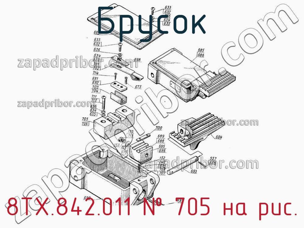 ОТК компании гарантирует отсутствие дефектов у всех брусков на нашем сайте. Для покупки 8ТХ.842.011 свяжитесь с отделом продаж. Менеджеры компании предоставят всю информацию о цене, наличии, сроках доставки, гарантии и ответят на любые другие вопросы. Брусок, номер 705 на чертеже, Выключатель кнопочный ножной КН-2А, КН-2АТ и другие запасные части для , а также другие бруски и похожие изделия представлены на сайте zapadpribor.com.