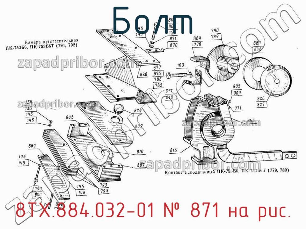 Мы даем гарантию на отсутствие брака или других несоответствий технической документации у всех болтов. Для приобритения 8ТХ.884.032-01 - обратитесь в наш отдел продаж. Чтобы получить более подробную информацию о товаре, его доставке или у вас есть любой другой вопрос - позвоните нам и мы поможем вам окончательно определиться по поводу приобретения этого товара. Болт, номер 871 на чертеже, Камера дугогасительная,Контакт неподвижный ПК-753Б6, ПК-753Б6Т и другие запасные части для , а также другие болты и похожие изделия представлены на сайте zapadpribor.com.