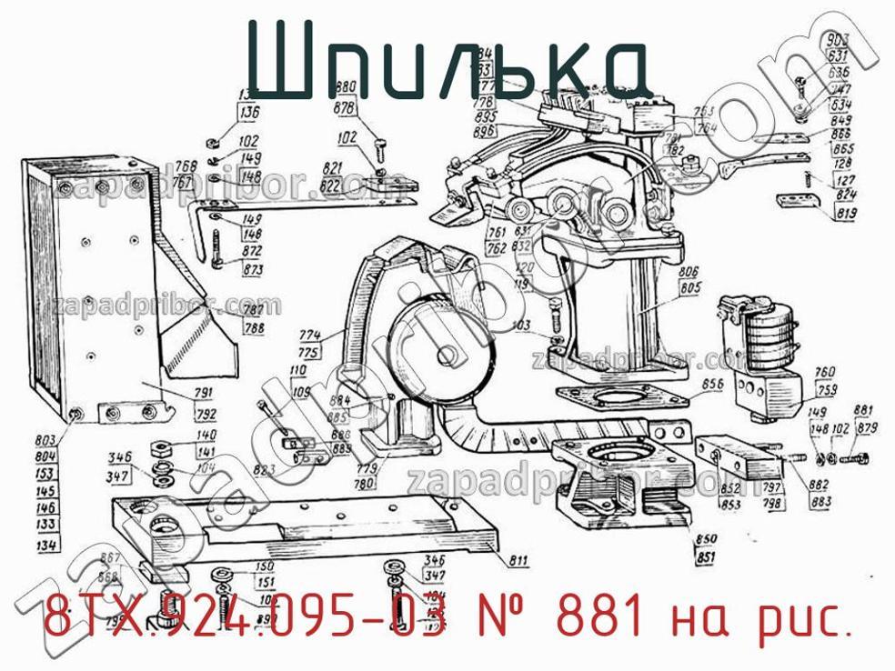 Компания со своей стороны гарантирует отсутствие каких-либо дефектов, несовершенств или неточностей у комплектации и документации шпильки. 8ТХ.924.095-03 можно заказать, связавшись с нашим отделом продаж. Наши менеджеры всегда радостно предоставят вам всю информацию о товаре, его наличии, цене и т.д. Для этого позвоните по указанным телефонам или оставьте заявку через форму обратной связи. Шпилька, номер 881 на чертеже, Контактор электропневматический ПК-753Б6, ПК-753 (757,758) и другие запасные части для , а также другие шпильки и похожие изделия представлены на сайте zapadpribor.com.