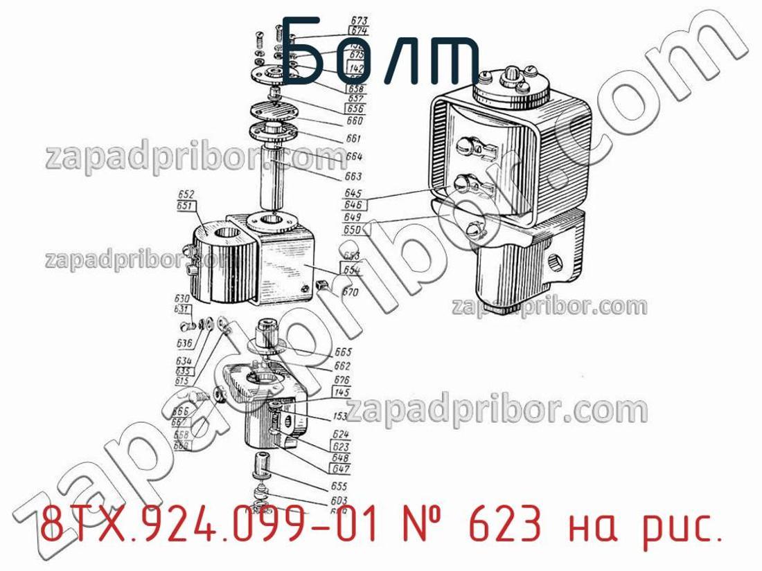 Наш ОТК гарантирует отсутствие брака у всех болтов представленных на нашем сайте. Для заказа 8ТХ.924.099-01 обращайтесь в отдел продаж. Информация о цене, наличии, сроках поставки, сроке гарантии и по других вопросах обращайтесь по телефонам, указанным в контактах или оставьте заявку через форму обратной связи. Болт, номер 623 на чертеже, Вентиль электропневматический включающий ВВ-32, ВВ-32Т и другие запасные части для , а также другие болты и похожие изделия представлены на сайте zapadpribor.com.