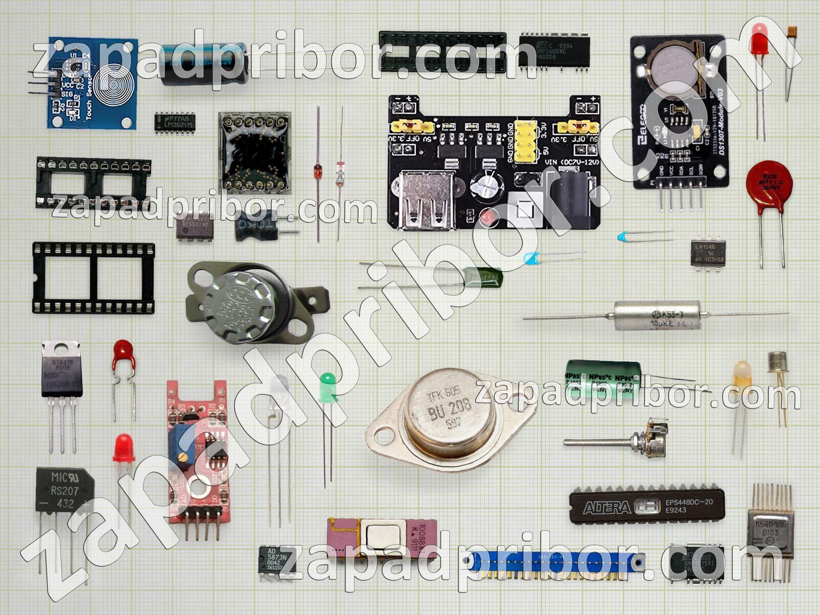 Кроме этих радиодеталей на нашем сайте вы сможете найти большой перечень компонентов. Осуществляйте поиск по основным типам радиодеталей таких как резистор, соединитель, тиристор, трансформатор, фотодиод, светодиод, индуктивность, реле, датчик, переключатель, диодный мост, экран, колодки, резонатор, адаптер, диод, разъем, конденсатор, усилитель, преобразователь, дисплей, микросхема, кнопка, контакты, индикатор, тумблер, транзистор, дроссель и другие.