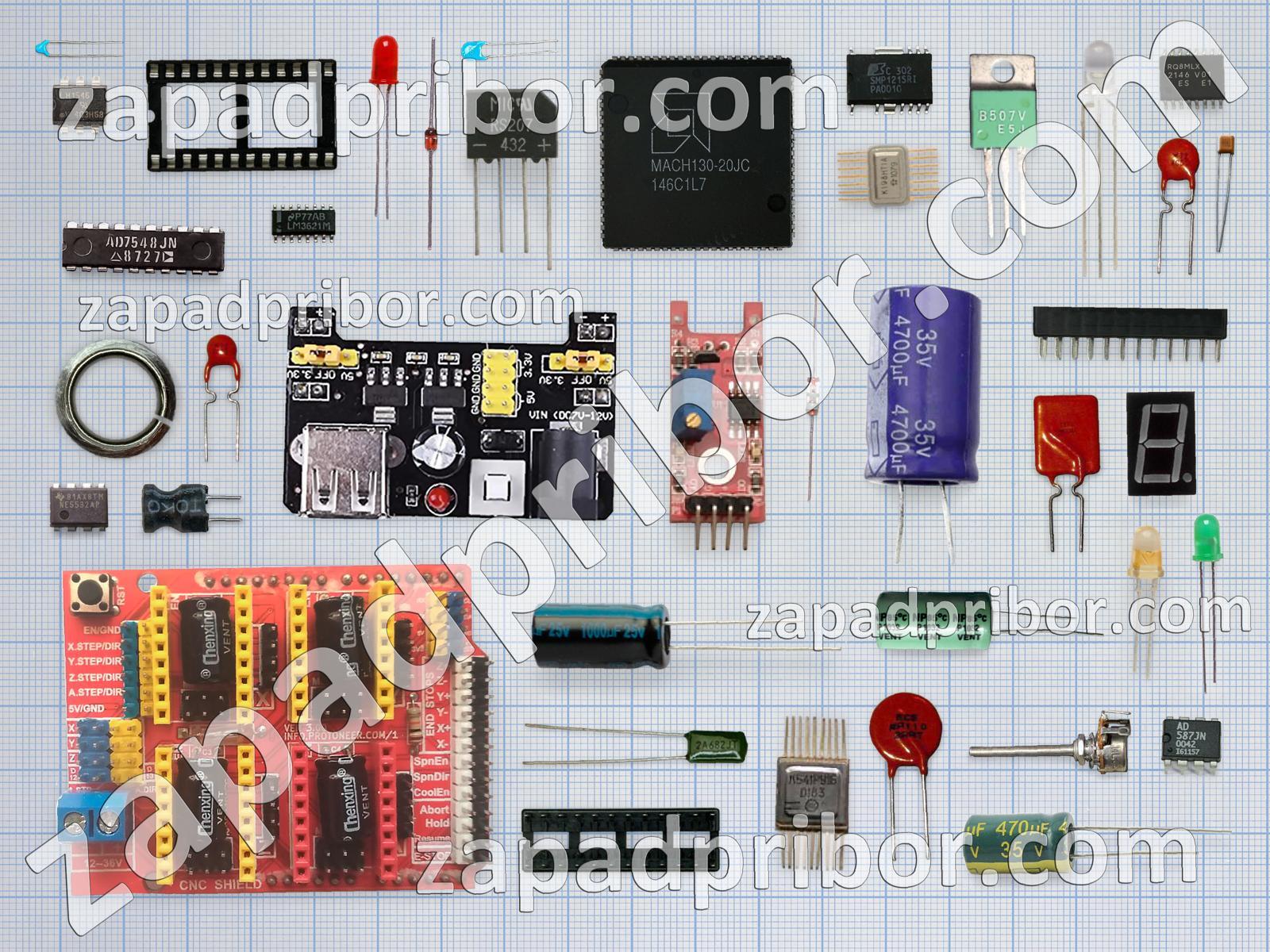 Кроме этих радиодеталей на нашем сайте вы сможете найти большой перечень компонентов. Осуществляйте поиск по основным типам радиодеталей таких как микросхема, усилитель, трансформатор, тумблер, дроссель, светодиод, адаптер, экран, транзистор, диод, индикатор, конденсатор, датчик, преобразователь, контакты, индуктивность, фотодиод, резистор, кнопка, соединитель, реле, переключатель, тиристор, дисплей, разъем, резонатор, диодный мост, колодки и другие.