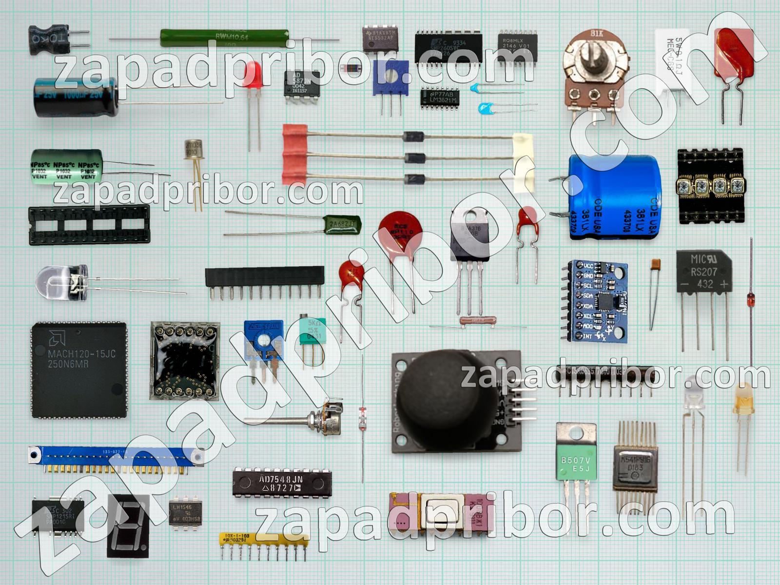 Кроме этих радиодеталей на нашем сайте вы сможете найти большой перечень компонентов. Осуществляйте поиск по основным типам радиодеталей таких как колодки, микросхема, кнопка, диодный мост, экран, дисплей, диод, светодиод, переключатель, конденсатор, соединитель, преобразователь, резистор, контакты, фотодиод, тиристор, усилитель, дроссель, индуктивность, тумблер, трансформатор, реле, датчик, транзистор, разъем, резонатор, адаптер, индикатор и другие.