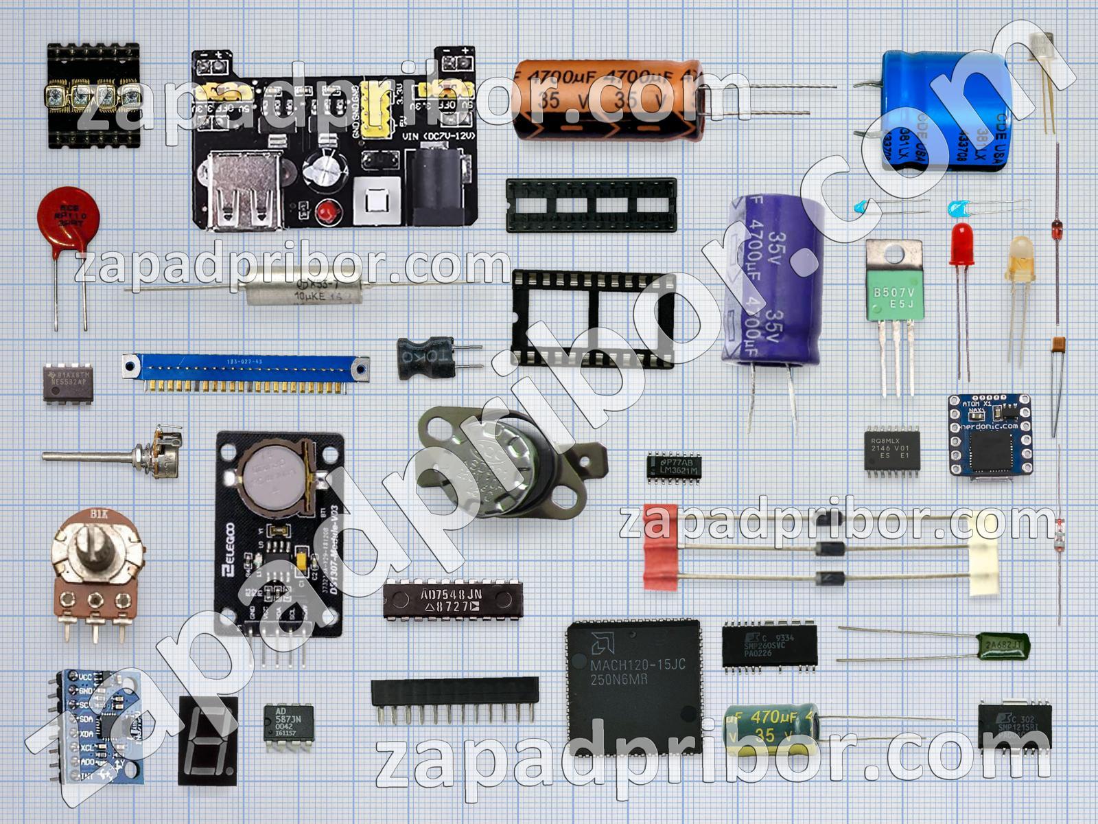 Кроме этих радиодеталей на нашем сайте вы сможете найти большой перечень компонентов. Осуществляйте поиск по основным типам радиодеталей таких как усилитель, конденсатор, соединитель, кнопка, диодный мост, индуктивность, фотодиод, трансформатор, разъем, диод, светодиод, переключатель, колодки, резонатор, адаптер, тиристор, преобразователь, экран, резистор, индикатор, тумблер, дроссель, датчик, контакты, микросхема, дисплей, реле, транзистор и другие.