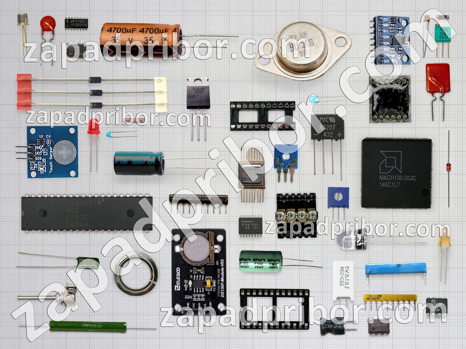 Кроме этих радиодеталей на нашем сайте вы сможете найти большой перечень компонентов. Осуществляйте поиск по основным типам радиодеталей таких как светодиод, индикатор, разъем, переключатель, тумблер, кнопка, усилитель, дисплей, транзистор, датчик, контакты, реле, адаптер, резистор, фотодиод, конденсатор, диодный мост, преобразователь, трансформатор, индуктивность, дроссель, колодки, резонатор, экран, соединитель, микросхема, тиристор, диод и другие.