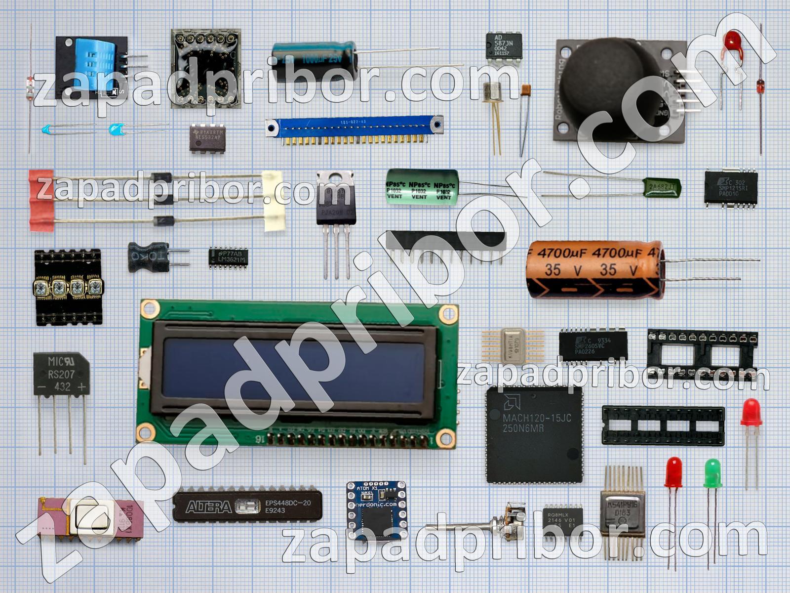 Кроме этих радиодеталей на нашем сайте вы сможете найти большой перечень компонентов. Осуществляйте поиск по основным типам радиодеталей таких как светодиод, датчик, индуктивность, микросхема, фотодиод, индикатор, преобразователь, дроссель, трансформатор, экран, усилитель, адаптер, тумблер, транзистор, дисплей, реле, кнопка, диод, диодный мост, резистор, колодки, соединитель, разъем, тиристор, конденсатор, переключатель, контакты, резонатор и другие.