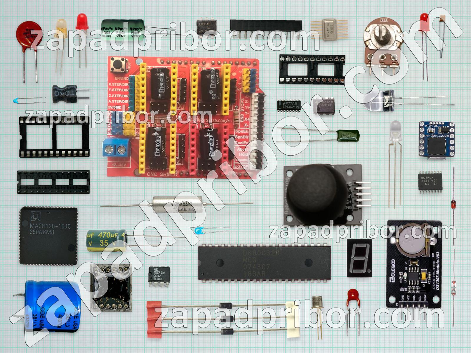 Кроме этих радиодеталей на нашем сайте вы сможете найти большой перечень компонентов. Осуществляйте поиск по основным типам радиодеталей таких как микросхема, индикатор, кнопка, фотодиод, колодки, дисплей, диодный мост, диод, соединитель, дроссель, переключатель, транзистор, конденсатор, реле, трансформатор, адаптер, усилитель, светодиод, экран, разъем, преобразователь, резонатор, датчик, резистор, тумблер, контакты, тиристор, индуктивность и другие.