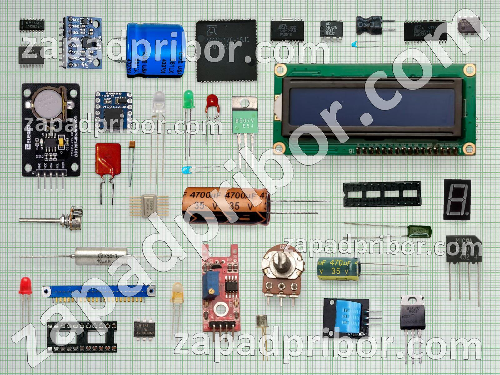 Кроме этих радиодеталей на нашем сайте вы сможете найти большой перечень компонентов. Осуществляйте поиск по основным типам радиодеталей таких как светодиод, индикатор, кнопка, микросхема, трансформатор, экран, тиристор, резистор, диод, дроссель, переключатель, тумблер, резонатор, преобразователь, конденсатор, контакты, разъем, индуктивность, датчик, колодки, фотодиод, соединитель, диодный мост, дисплей, адаптер, усилитель, реле, транзистор и другие.