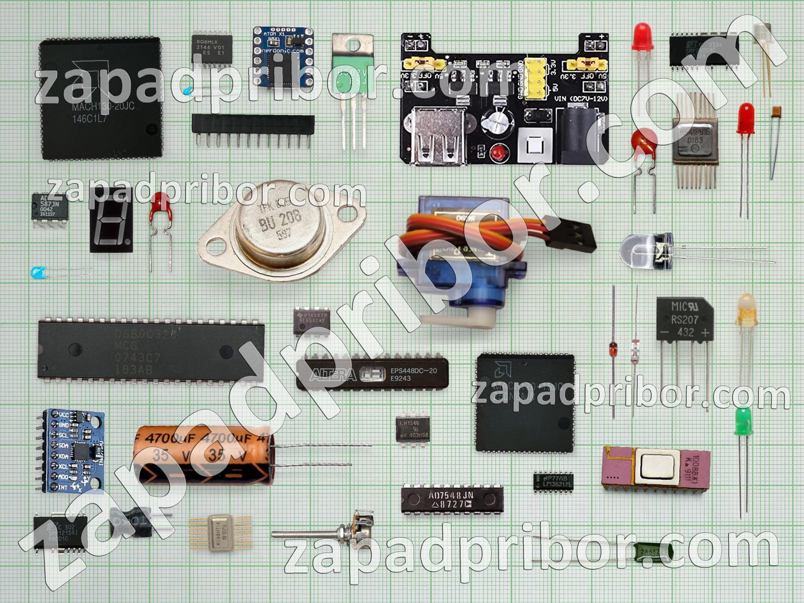 Кроме этих радиодеталей на нашем сайте вы сможете найти большой перечень компонентов. Осуществляйте поиск по основным типам радиодеталей таких как дисплей, датчик, транзистор, светодиод, кнопка, разъем, колодки, реле, резонатор, усилитель, индикатор, конденсатор, диодный мост, тумблер, переключатель, дроссель, фотодиод, экран, диод, контакты, резистор, преобразователь, адаптер, тиристор, соединитель, микросхема, индуктивность, трансформатор и другие.