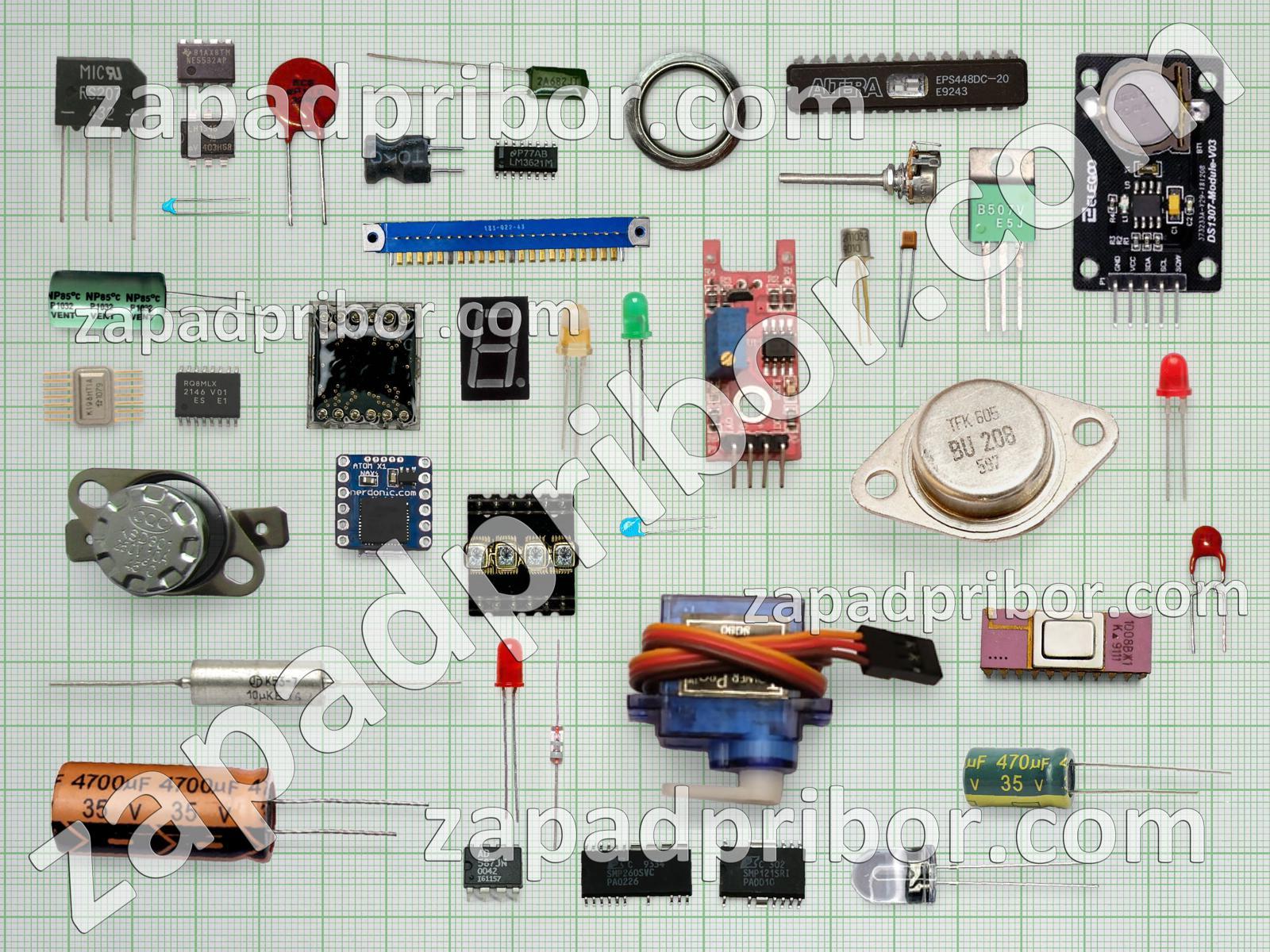Кроме этих радиодеталей на нашем сайте вы сможете найти большой перечень компонентов. Осуществляйте поиск по основным типам радиодеталей таких как транзистор, соединитель, индуктивность, фотодиод, разъем, колодки, дисплей, адаптер, преобразователь, трансформатор, экран, тумблер, дроссель, светодиод, конденсатор, резистор, контакты, тиристор, реле, диод, кнопка, усилитель, резонатор, микросхема, датчик, индикатор, диодный мост, переключатель и другие.