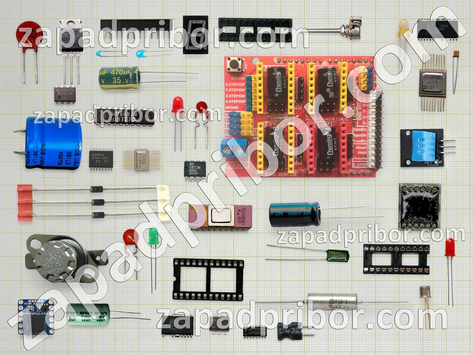 Кроме этих радиодеталей на нашем сайте вы сможете найти большой перечень компонентов. Осуществляйте поиск по основным типам радиодеталей таких как конденсатор, дроссель, контакты, индикатор, светодиод, тиристор, индуктивность, тумблер, экран, разъем, диод, датчик, колодки, соединитель, преобразователь, трансформатор, адаптер, переключатель, фотодиод, диодный мост, транзистор, резонатор, кнопка, дисплей, резистор, усилитель, микросхема, реле и другие.