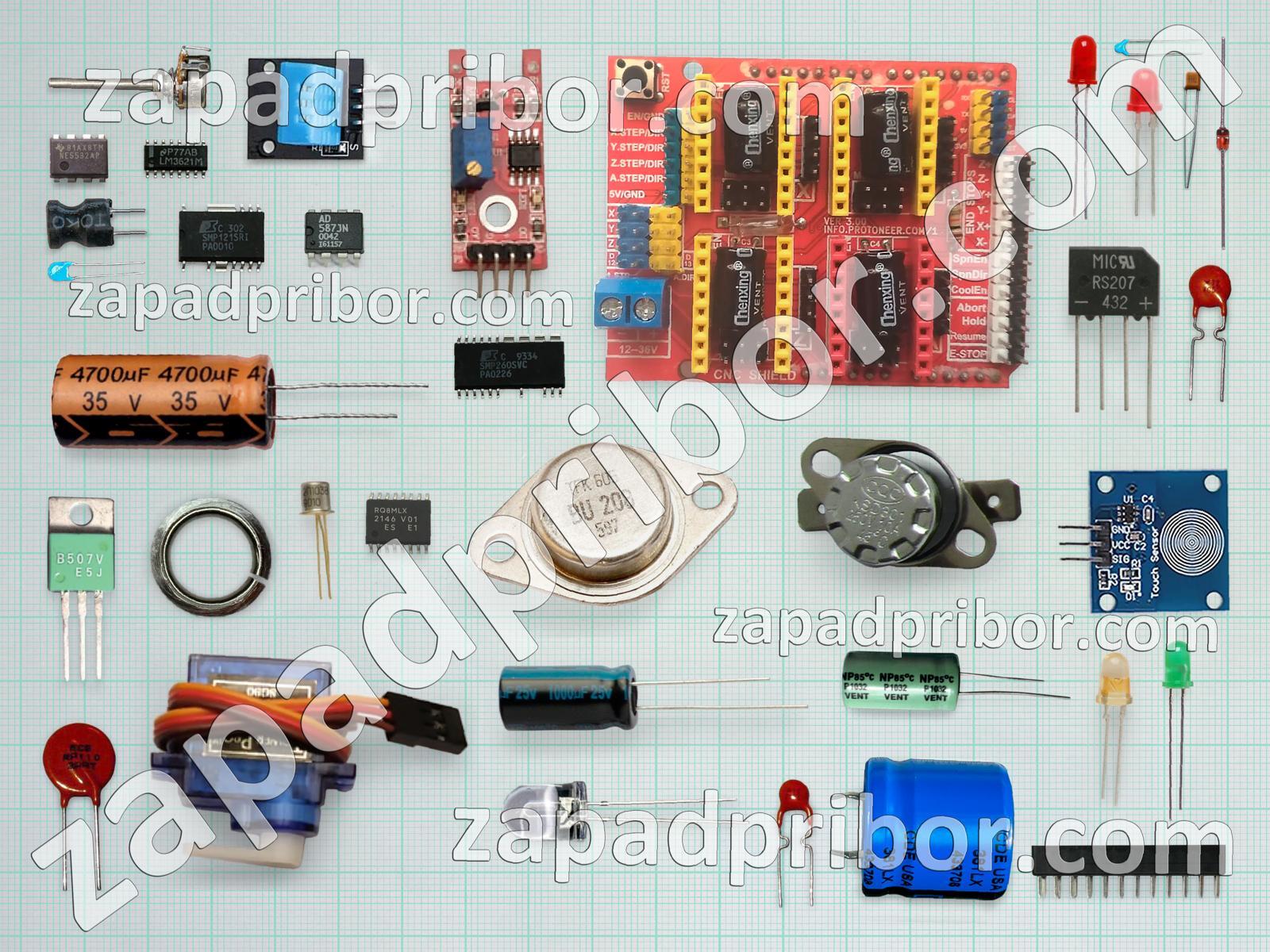 Кроме этих радиодеталей на нашем сайте вы сможете найти большой перечень компонентов. Осуществляйте поиск по основным типам радиодеталей таких как тиристор, резонатор, датчик, усилитель, индикатор, адаптер, светодиод, переключатель, колодки, преобразователь, дроссель, резистор, экран, тумблер, соединитель, диод, трансформатор, дисплей, диодный мост, кнопка, индуктивность, разъем, конденсатор, транзистор, фотодиод, микросхема, контакты, реле и другие.