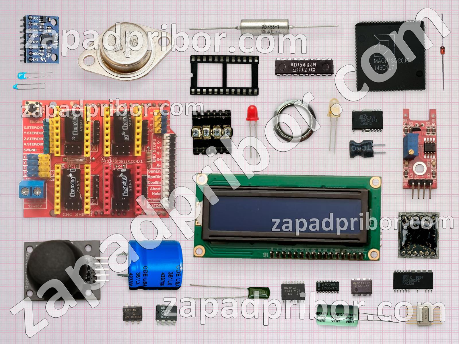 Кроме этих радиодеталей на нашем сайте вы сможете найти большой перечень компонентов. Осуществляйте поиск по основным типам радиодеталей таких как реле, адаптер, соединитель, тумблер, преобразователь, транзистор, тиристор, индикатор, фотодиод, датчик, усилитель, трансформатор, колодки, конденсатор, разъем, дисплей, контакты, индуктивность, дроссель, переключатель, экран, светодиод, диодный мост, диод, микросхема, резонатор, резистор, кнопка и другие.
