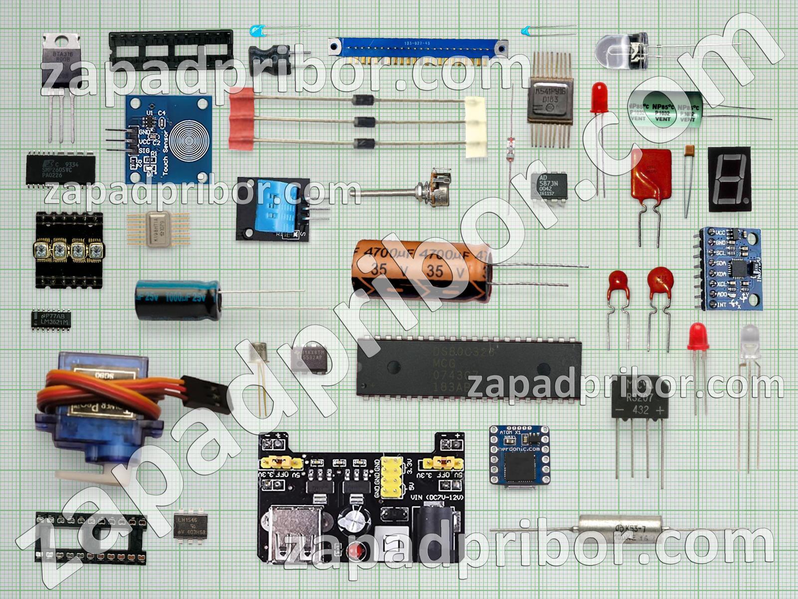 Кроме этих радиодеталей на нашем сайте вы сможете найти большой перечень компонентов. Осуществляйте поиск по основным типам радиодеталей таких как переключатель, контакты, тумблер, резонатор, разъем, диод, светодиод, диодный мост, фотодиод, датчик, усилитель, реле, соединитель, экран, тиристор, дисплей, микросхема, колодки, дроссель, транзистор, трансформатор, конденсатор, индикатор, индуктивность, адаптер, преобразователь, резистор, кнопка и другие.