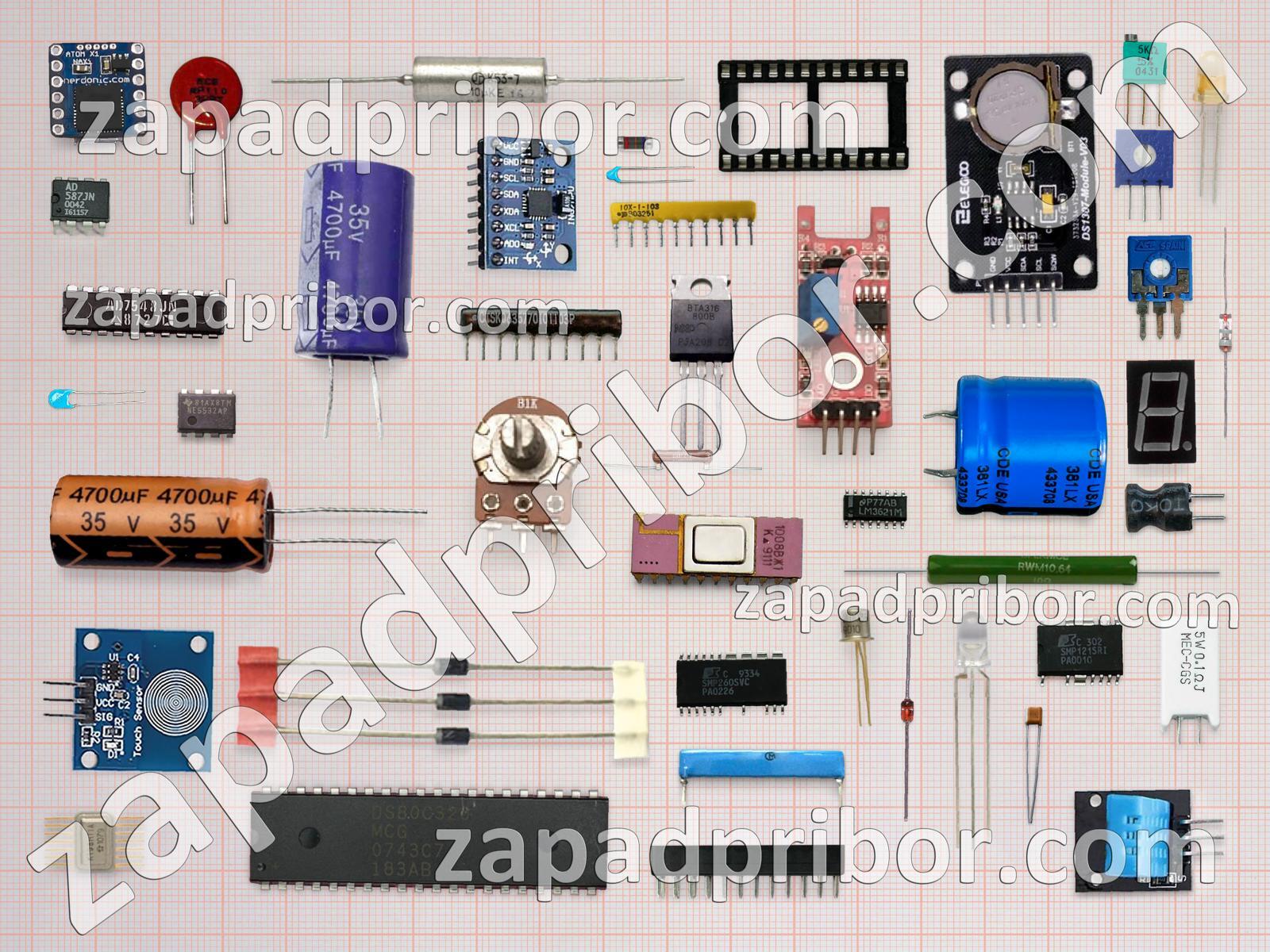 Кроме этих радиодеталей на нашем сайте вы сможете найти большой перечень компонентов. Осуществляйте поиск по основным типам радиодеталей таких как адаптер, трансформатор, датчик, диод, тиристор, дисплей, диодный мост, тумблер, индуктивность, разъем, индикатор, транзистор, кнопка, реле, конденсатор, фотодиод, резонатор, резистор, усилитель, дроссель, экран, светодиод, колодки, микросхема, контакты, преобразователь, переключатель, соединитель и другие.
