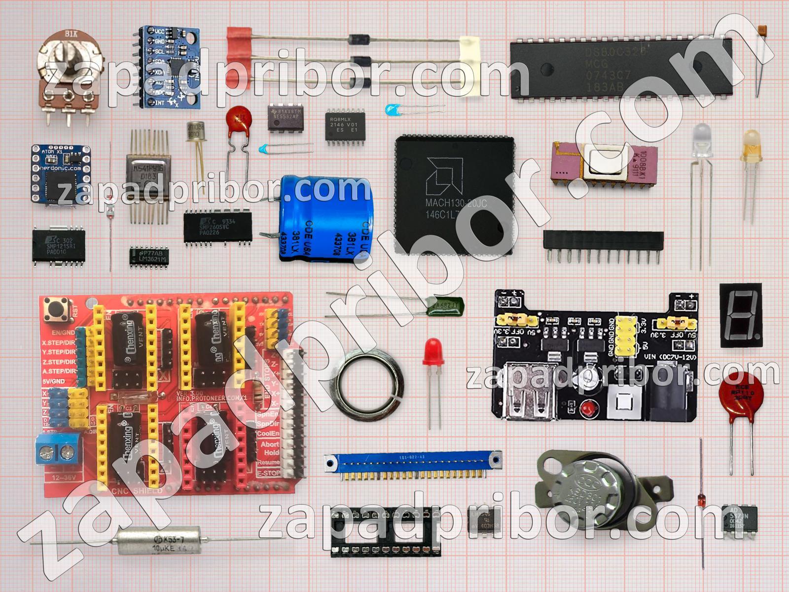 Кроме этих радиодеталей на нашем сайте вы сможете найти большой перечень компонентов. Осуществляйте поиск по основным типам радиодеталей таких как тумблер, диод, адаптер, датчик, резонатор, дроссель, тиристор, соединитель, конденсатор, светодиод, фотодиод, разъем, колодки, переключатель, кнопка, контакты, усилитель, индуктивность, преобразователь, экран, дисплей, транзистор, трансформатор, индикатор, резистор, реле, микросхема, диодный мост и другие.