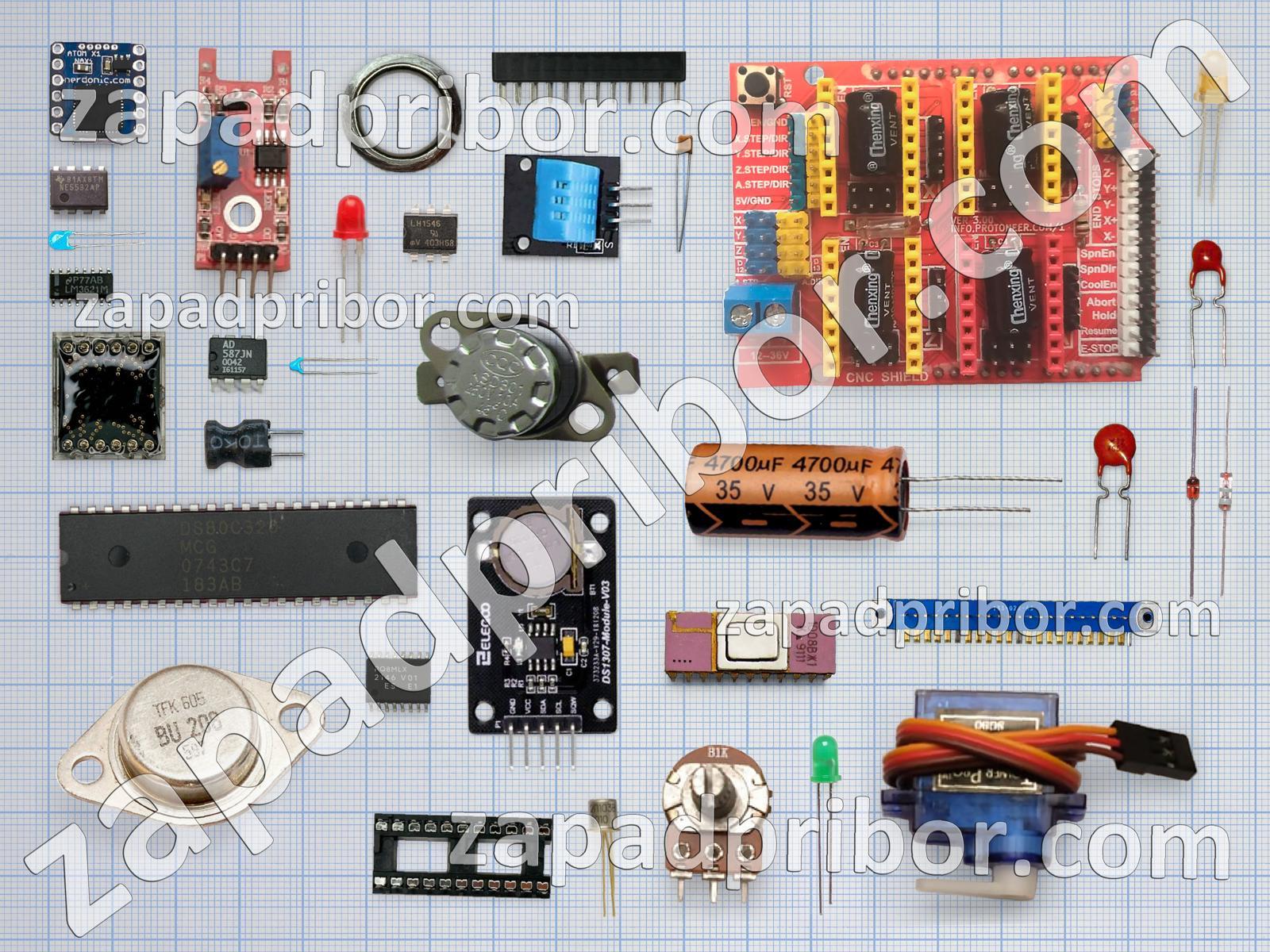 Кроме этих радиодеталей на нашем сайте вы сможете найти большой перечень компонентов. Осуществляйте поиск по основным типам радиодеталей таких как конденсатор, индикатор, тиристор, реле, транзистор, колодки, тумблер, резистор, трансформатор, адаптер, преобразователь, дроссель, датчик, фотодиод, кнопка, усилитель, микросхема, контакты, экран, дисплей, разъем, соединитель, диод, светодиод, резонатор, индуктивность, переключатель, диодный мост и другие.
