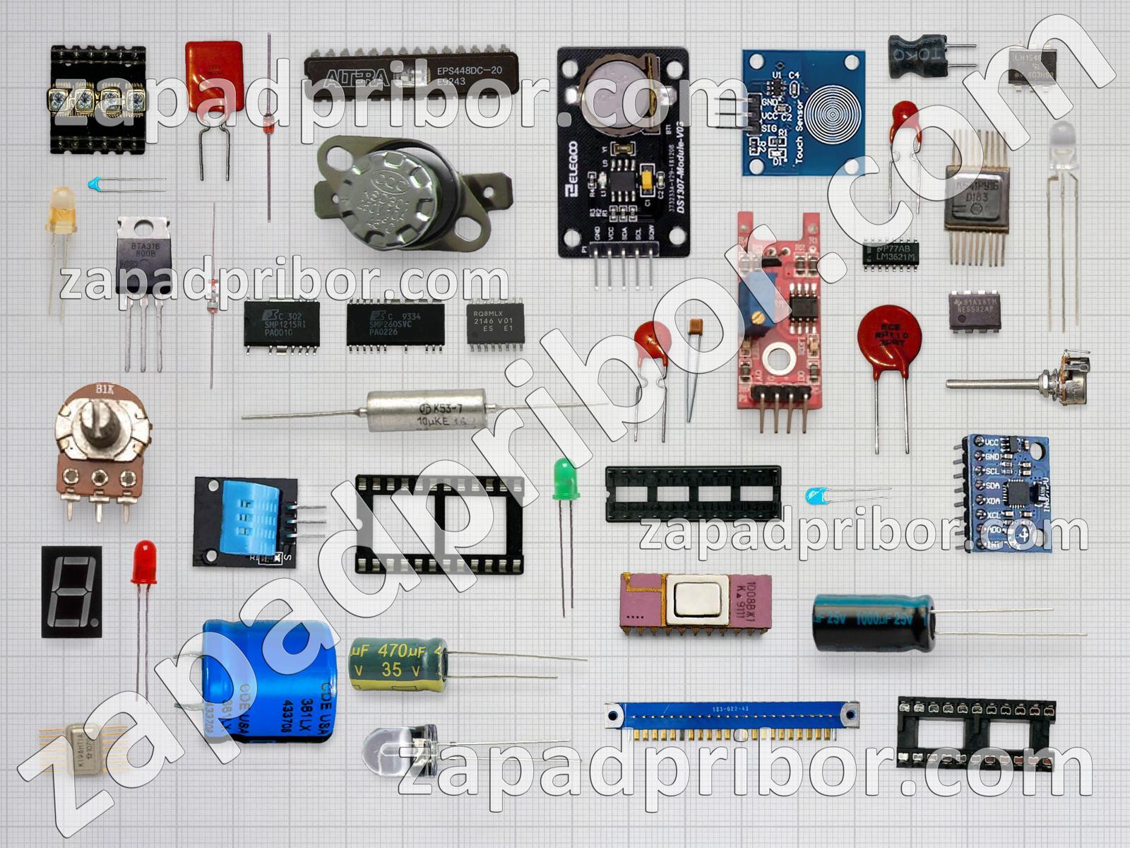 Кроме этих радиодеталей на нашем сайте вы сможете найти большой перечень компонентов. Осуществляйте поиск по основным типам радиодеталей таких как тумблер, преобразователь, датчик, адаптер, колодки, трансформатор, дроссель, диод, переключатель, реле, контакты, микросхема, индуктивность, конденсатор, усилитель, резонатор, кнопка, соединитель, дисплей, экран, резистор, транзистор, светодиод, диодный мост, тиристор, индикатор, разъем, фотодиод и другие.