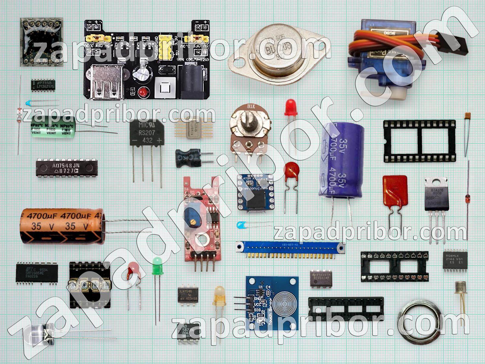 Кроме этих радиодеталей на нашем сайте вы сможете найти большой перечень компонентов. Осуществляйте поиск по основным типам радиодеталей таких как микросхема, тиристор, транзистор, дроссель, кнопка, светодиод, диодный мост, фотодиод, тумблер, диод, преобразователь, соединитель, колодки, усилитель, трансформатор, реле, адаптер, индикатор, разъем, резонатор, конденсатор, резистор, индуктивность, экран, контакты, датчик, дисплей, переключатель и другие.