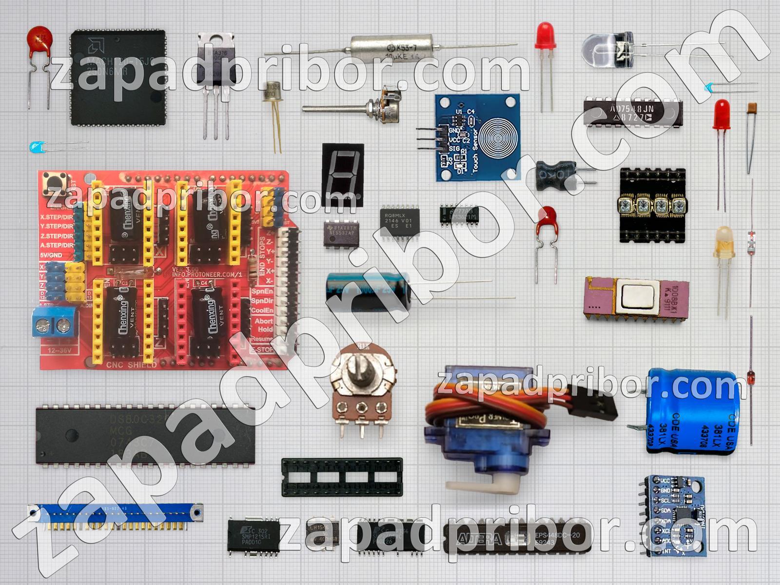 Кроме этих радиодеталей на нашем сайте вы сможете найти большой перечень компонентов. Осуществляйте поиск по основным типам радиодеталей таких как кнопка, соединитель, тумблер, усилитель, трансформатор, диодный мост, резистор, адаптер, микросхема, реле, разъем, переключатель, фотодиод, контакты, индуктивность, конденсатор, тиристор, дроссель, преобразователь, резонатор, датчик, диод, транзистор, индикатор, светодиод, экран, колодки, дисплей и другие.