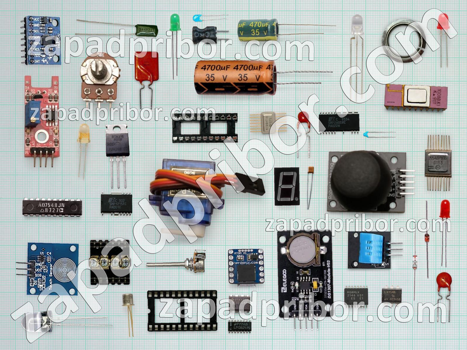 Кроме этих радиодеталей на нашем сайте вы сможете найти большой перечень компонентов. Осуществляйте поиск по основным типам радиодеталей таких как светодиод, индуктивность, переключатель, разъем, контакты, диодный мост, микросхема, соединитель, тиристор, дроссель, фотодиод, резистор, индикатор, адаптер, экран, трансформатор, датчик, колодки, дисплей, тумблер, преобразователь, резонатор, усилитель, кнопка, конденсатор, транзистор, диод, реле и другие.