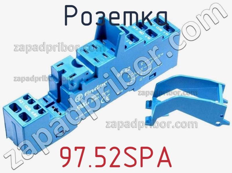 Основные характеристики розетки 97.52SPA: 97.52SPA, Розетка с безвинтовыми клеммами (пружинный зажим) для реле 46.52; применяются модули 86.30аксессуары для Реле