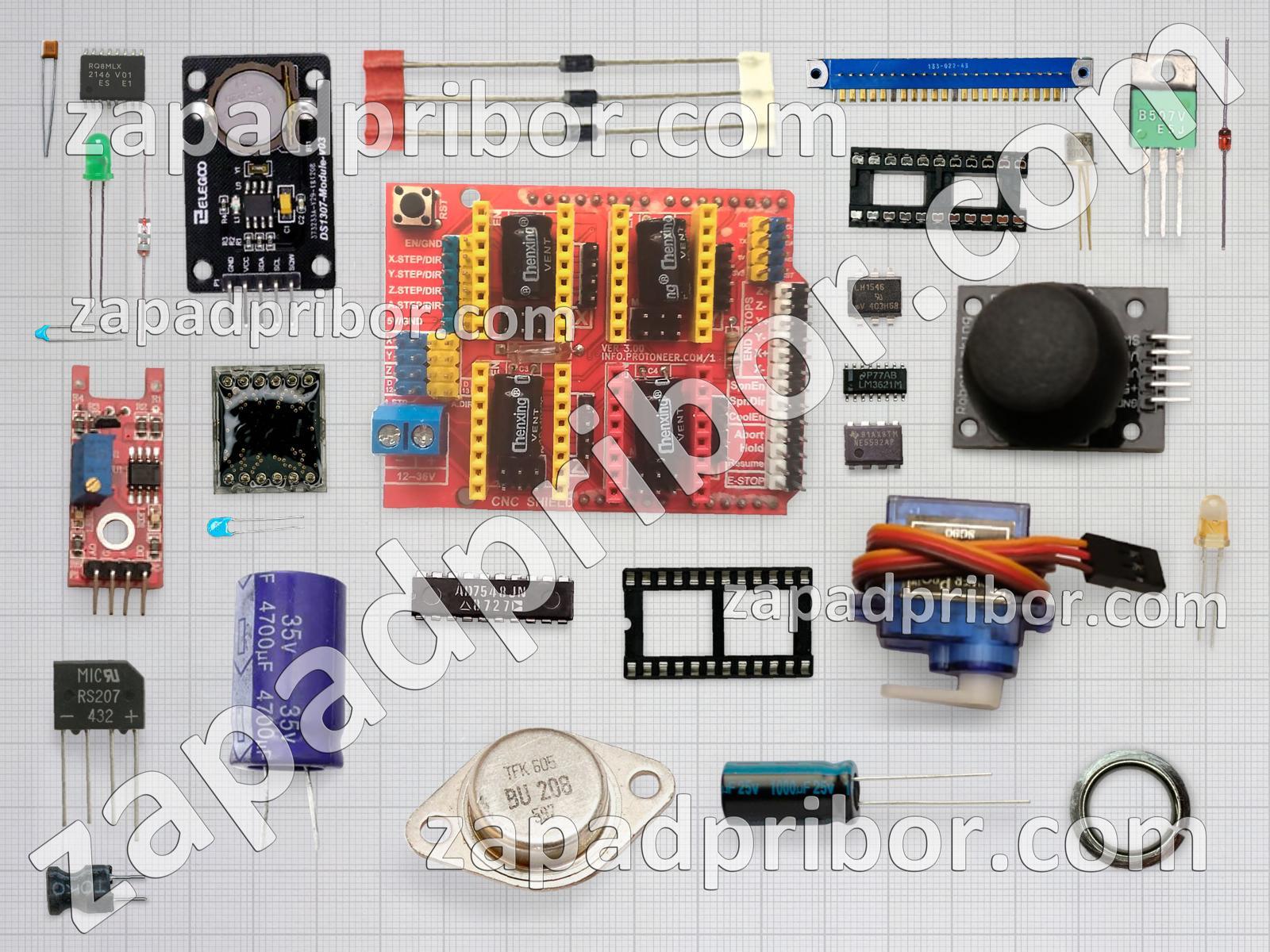 Кроме этих радиодеталей на нашем сайте вы сможете найти большой перечень компонентов. Осуществляйте поиск по основным типам радиодеталей таких как диодный мост, резистор, реле, усилитель, фотодиод, датчик, тиристор, резонатор, дисплей, экран, трансформатор, разъем, индуктивность, адаптер, микросхема, соединитель, колодки, транзистор, светодиод, преобразователь, индикатор, кнопка, контакты, дроссель, тумблер, диод, конденсатор, переключатель и другие.