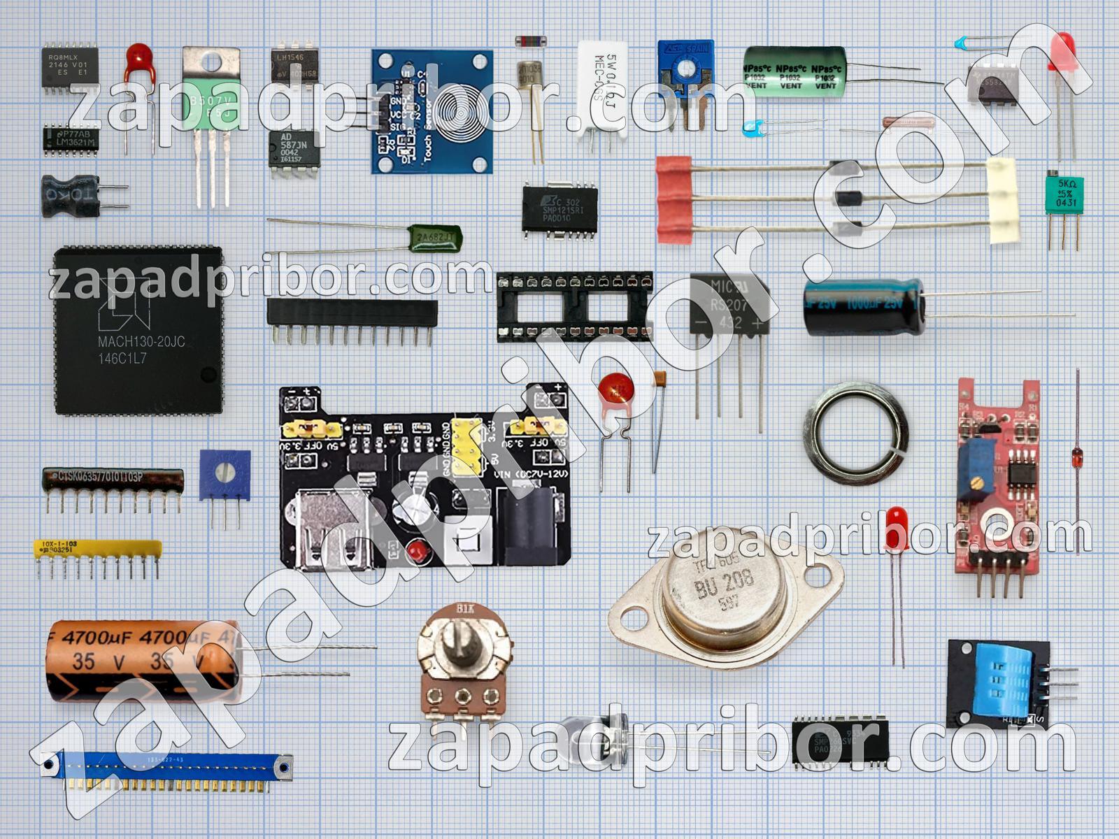 Кроме этих радиодеталей на нашем сайте вы сможете найти большой перечень компонентов. Осуществляйте поиск по основным типам радиодеталей таких как адаптер, тиристор, преобразователь, индикатор, тумблер, конденсатор, трансформатор, резонатор, датчик, переключатель, диод, диодный мост, усилитель, светодиод, резистор, колодки, контакты, соединитель, кнопка, транзистор, индуктивность, экран, реле, дисплей, разъем, фотодиод, дроссель, микросхема и другие.