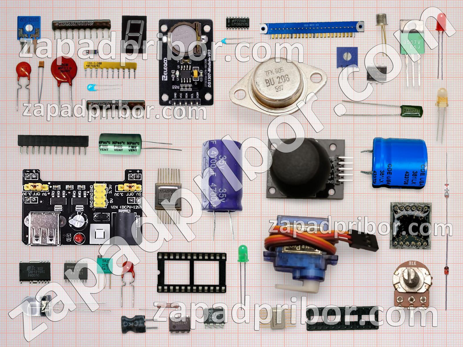Кроме этих радиодеталей на нашем сайте вы сможете найти большой перечень компонентов. Осуществляйте поиск по основным типам радиодеталей таких как усилитель, преобразователь, экран, дроссель, светодиод, индикатор, дисплей, тумблер, разъем, диодный мост, резонатор, контакты, резистор, колодки, конденсатор, индуктивность, трансформатор, датчик, кнопка, фотодиод, реле, тиристор, транзистор, диод, микросхема, соединитель, переключатель, адаптер и другие.