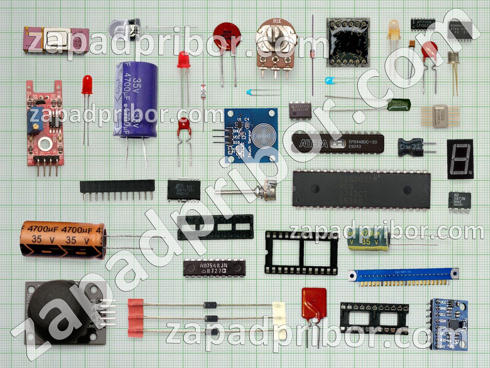 Кроме этих радиодеталей на нашем сайте вы сможете найти большой перечень компонентов. Осуществляйте поиск по основным типам радиодеталей таких как индуктивность, фотодиод, диод, усилитель, дроссель, датчик, преобразователь, соединитель, индикатор, диодный мост, разъем, колодки, конденсатор, дисплей, резистор, светодиод, резонатор, адаптер, тумблер, микросхема, тиристор, переключатель, кнопка, транзистор, трансформатор, реле, контакты, экран и другие.