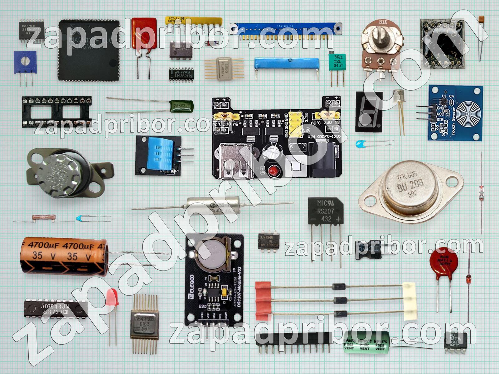 Кроме этих радиодеталей на нашем сайте вы сможете найти большой перечень компонентов. Осуществляйте поиск по основным типам радиодеталей таких как преобразователь, датчик, резистор, реле, колодки, экран, соединитель, дроссель, резонатор, разъем, переключатель, кнопка, фотодиод, усилитель, адаптер, тиристор, трансформатор, дисплей, конденсатор, диод, тумблер, контакты, индикатор, транзистор, светодиод, диодный мост, индуктивность, микросхема и другие.