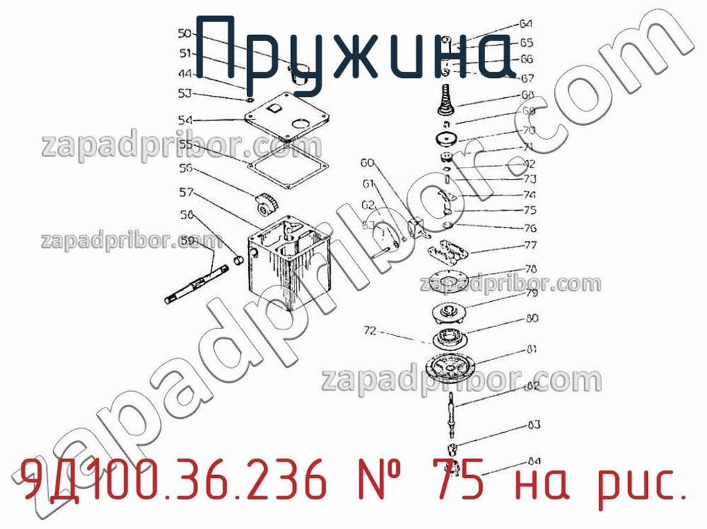 Мы даем гарантию на отсутствие брака или других несоответствий технической документации. Для приобретения 9Д100.36.236 обращайтесь в наш отдел продаж. Информацию о цене, наличию, срокам доставки, гарантии и любые другие вопросы уточняйте у наших менеджеров. Пружина 9Д100.36.236, номер 75 на чертеже, Регулятор частоты вращения 36гр.-041 и другие запасные части для ПДГ4А) , а также другие пружины и похожие изделия представлены на сайте zapadpribor.com.