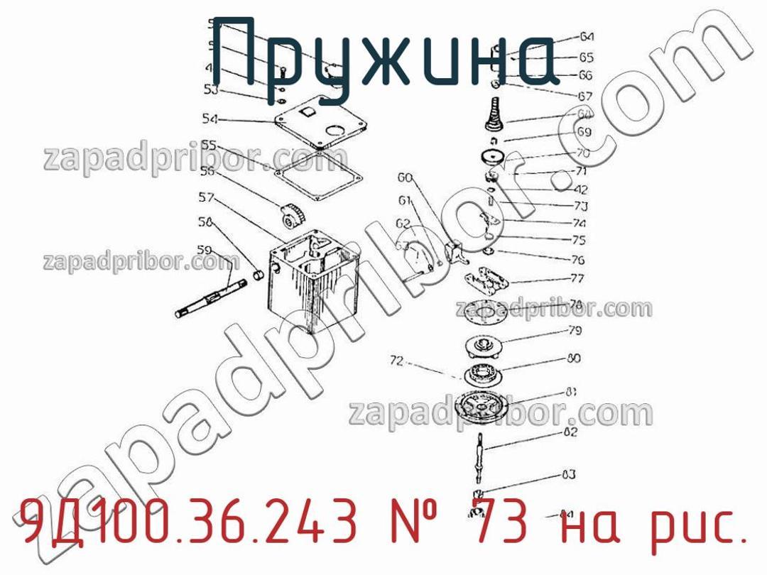 ОТК компании гарантирует отсутствие дефектов у всех пружин на нашем сайте. Для покупки 9Д100.36.243 свяжитесь с отделом продаж. Менеджеры компании предоставят всю информацию о цене, наличии, сроках доставки, гарантии и ответят на любые другие вопросы. Пружина 9Д100.36.243, номер 73 на чертеже, Регулятор частоты вращения 36гр.-041 и другие запасные части для ПДГ4А) , а также другие пружины и похожие изделия представлены на сайте zapadpribor.com.