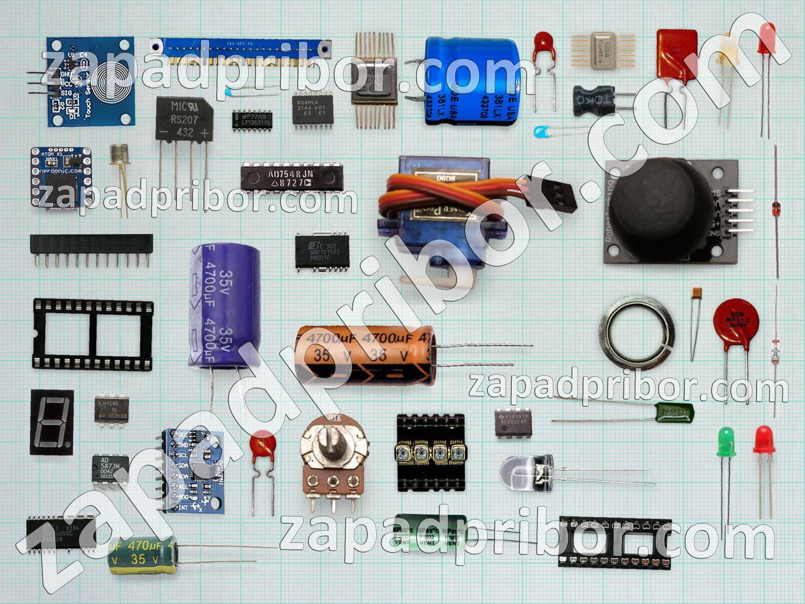 Кроме этих радиодеталей на нашем сайте вы сможете найти большой перечень компонентов. Осуществляйте поиск по основным типам радиодеталей таких как кнопка, разъем, преобразователь, резонатор, реле, индикатор, фотодиод, тиристор, дроссель, диод, переключатель, контакты, транзистор, экран, резистор, дисплей, трансформатор, датчик, светодиод, диодный мост, индуктивность, микросхема, конденсатор, усилитель, колодки, адаптер, соединитель, тумблер и другие.