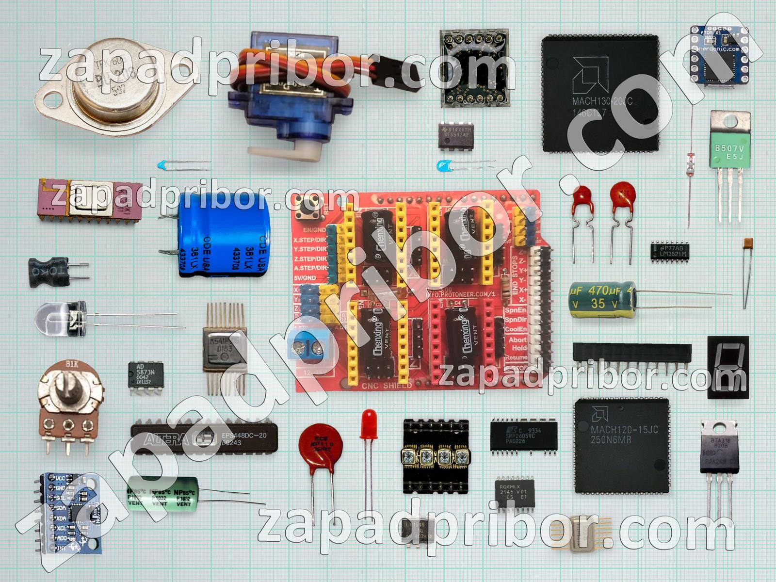 Кроме этих радиодеталей на нашем сайте вы сможете найти большой перечень компонентов. Осуществляйте поиск по основным типам радиодеталей таких как светодиод, диод, индикатор, адаптер, индуктивность, реле, переключатель, конденсатор, соединитель, трансформатор, кнопка, экран, микросхема, датчик, дроссель, диодный мост, разъем, тиристор, транзистор, преобразователь, усилитель, тумблер, колодки, контакты, фотодиод, резистор, резонатор, дисплей и другие.