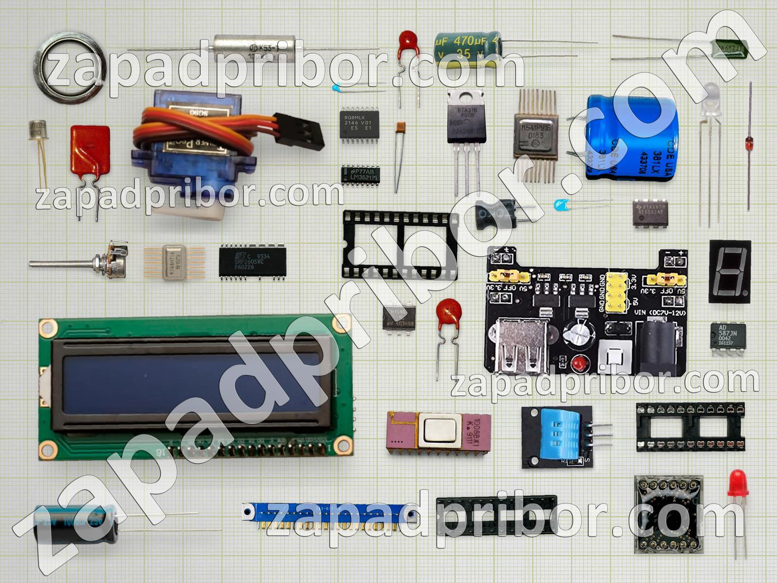 Кроме этих радиодеталей на нашем сайте вы сможете найти большой перечень компонентов. Осуществляйте поиск по основным типам радиодеталей таких как диодный мост, тиристор, дисплей, контакты, кнопка, фотодиод, индикатор, тумблер, реле, транзистор, адаптер, резонатор, переключатель, соединитель, датчик, светодиод, усилитель, колодки, конденсатор, микросхема, резистор, диод, экран, разъем, трансформатор, преобразователь, индуктивность, дроссель и другие.