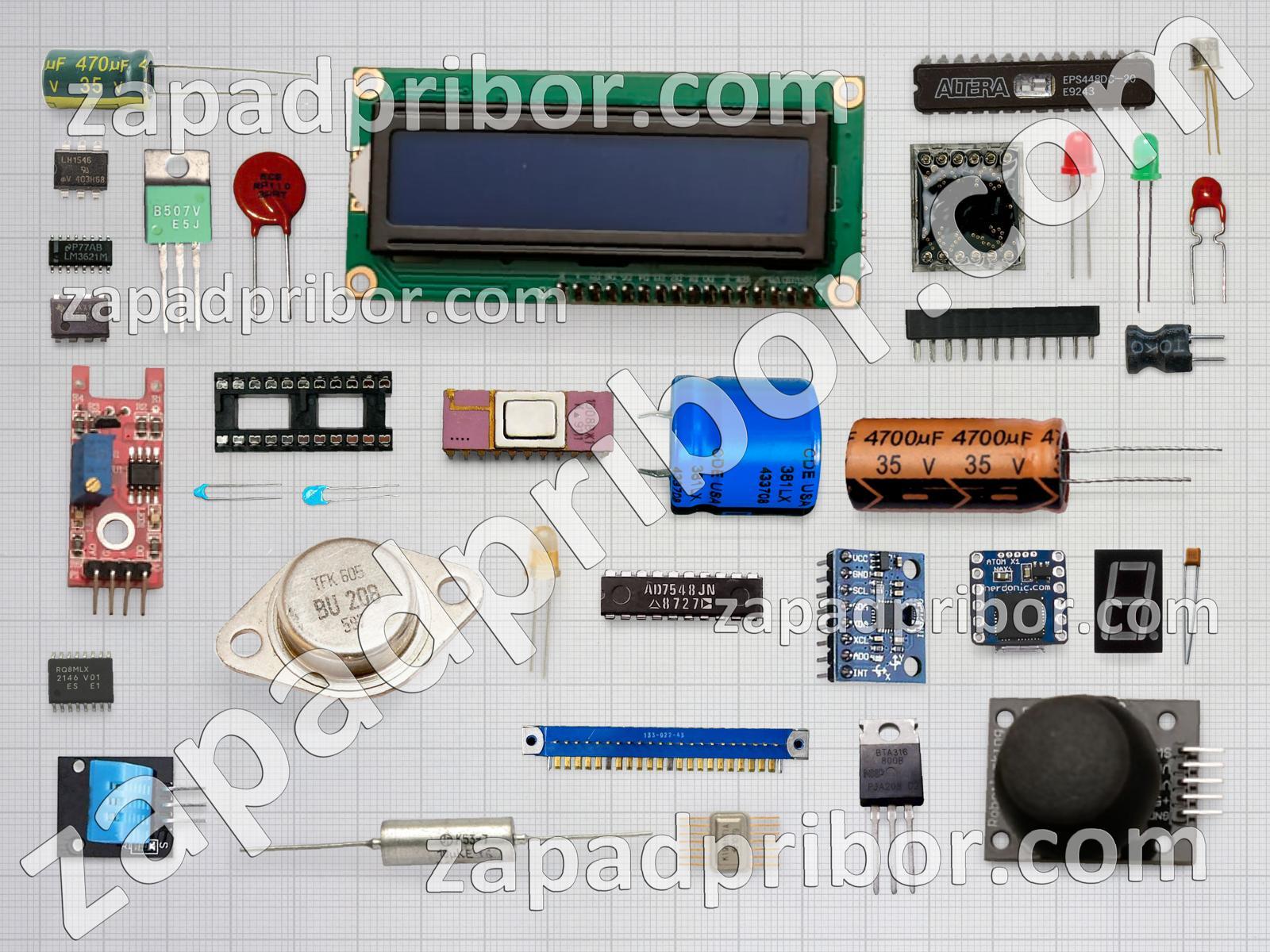 Кроме этих радиодеталей на нашем сайте вы сможете найти большой перечень компонентов. Осуществляйте поиск по основным типам радиодеталей таких как адаптер, диод, резистор, соединитель, дроссель, разъем, контакты, усилитель, трансформатор, фотодиод, преобразователь, реле, колодки, диодный мост, индуктивность, транзистор, резонатор, тумблер, экран, светодиод, дисплей, индикатор, переключатель, конденсатор, кнопка, микросхема, тиристор, датчик и другие.