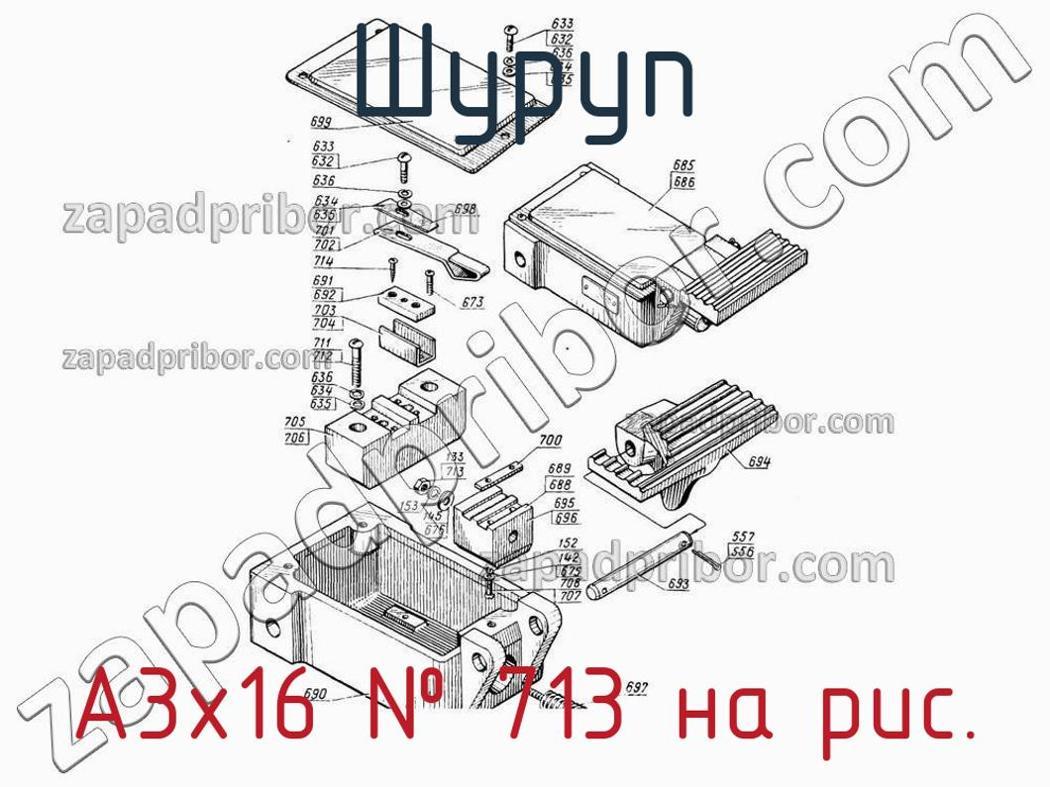 Мы даем гарантию на отсутствие брака или других несоответствий технической документации. По вопросам приобретения А3х16 обращайтесь в отдел продаж. Наши менеджеры предоставят всю интересующую Вас информацию по поводу цены, наличия, сроков доставки, гарантии или ответят на любые другие вопросы. Шуруп А3х16, номер 713 на чертеже, Выключатель кнопочный ножной КН-2А, КН-2АТ и другие запасные части для , а также другие шурупы и похожие изделия представлены на сайте zapadpribor.com.