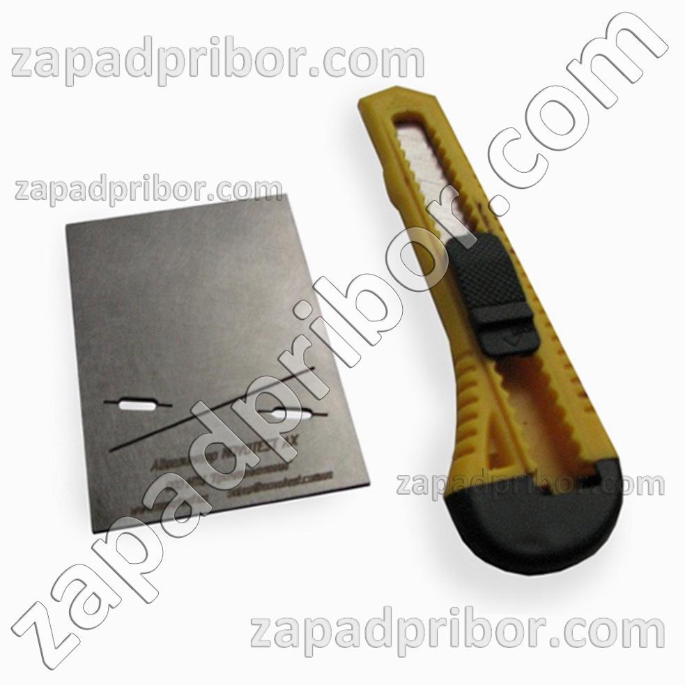 Адгезиметр представляет собой плоскую стальную пластину с нормированными прорезями и используется в качестве шаблона для выполнения надрезов.