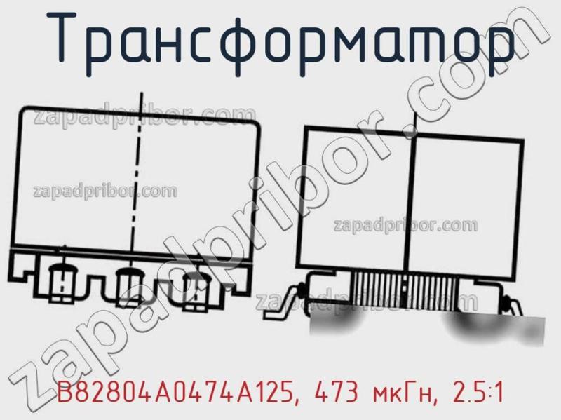 Основные характеристики трансформатора B82804A0474A125, 473 мкГн, 2.5:1 : B82804A0474A125, 473 мкГн, 2.5:1, Трансформатор для управления затворомИмпульсные трансформаторы 473uH Turns Ratio: 2.5:1