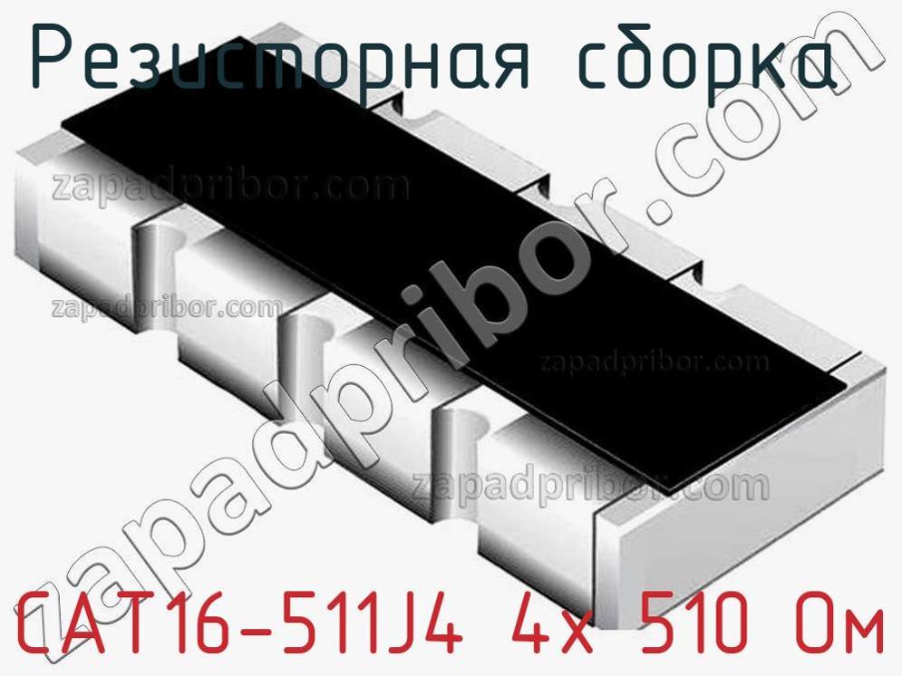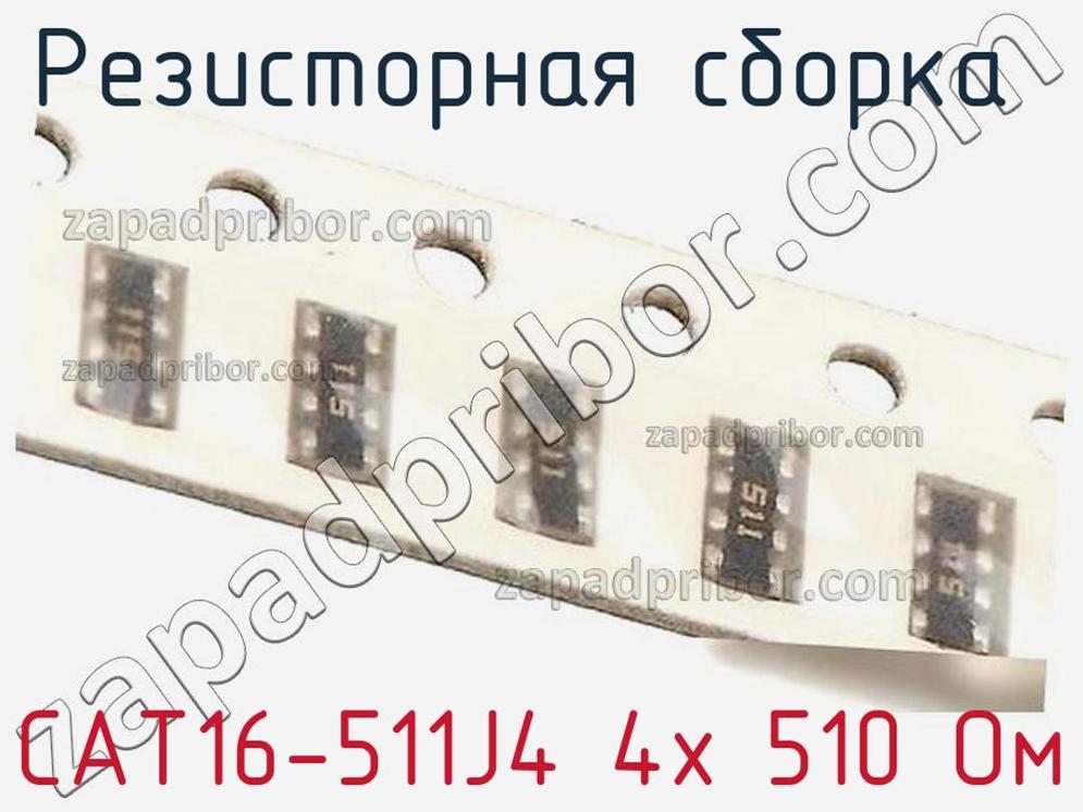 Основные характеристики резисторной сборки CAT16-511J4 4х 510 Ом : CAT16-511J4 4х 510 Ом, резисторная сборка (SMD)Чип- Резисторные сборки (smd resistor network) широко применяются в телекоммуникационном оборудовании, бытовых и промышленных электроприборах. Они оптимальны в случае необходимости экономии места на печатной плате. Основным преимуществом чип резисторных сборок перед сборками в dip корпусе является малая рассеиваемая мощность. Керамика чип резисторных сборок имеет сверху защитное покрытие, выводы соединены с металлизацией на керамике. Серия CAY отличается выпуклыми выводами. У сборок серии CAT выводы вогнутые. В сборках обеих серий 2, 4 или 8 резисторов.