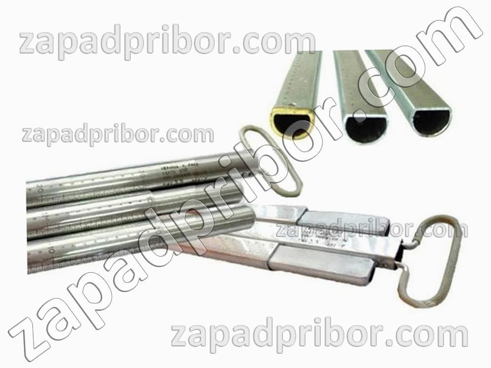 Метрошток МШНф применим при измерении уровней жидких веществ с нефтеродуктами в цистернах и других хранилищах с давлением не более 0,0005 МПа. Алюминевые метроштоки имеют два типоразмера 3,5 м и 4,5 м.