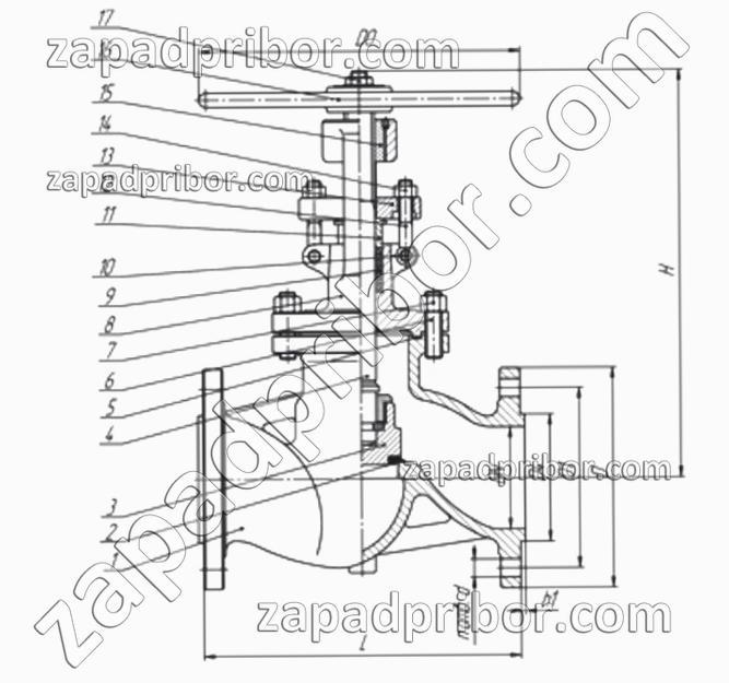 Подробнее ...Вентиль 15с65нж Ду25 Ру16 запорный сальниковый фланцевый.