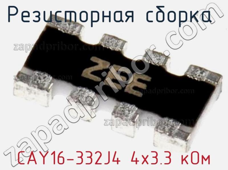 Основные характеристики резисторной сборки CAY16-332J4 4х3.3 кОм : CAY16-332J4 4х3.3 кОм, резисторная сборка (SMD)Чип- Резисторные сборки (smd resistor network) широко применяются в телекоммуникационном оборудовании, бытовых и промышленных электроприборах. Они оптимальны в случае необходимости экономии места на печатной плате. Основным преимуществом чип резисторных сборок перед сборками в dip корпусе является малая рассеиваемая мощность. Керамика чип резисторных сборок имеет сверху защитное покрытие, выводы соединены с металлизацией на керамике. Серия CAY отличается выпуклыми выводами. У сборок серии CAT выводы вогнутые. В сборках обеих серий 2, 4 или 8 резисторов.